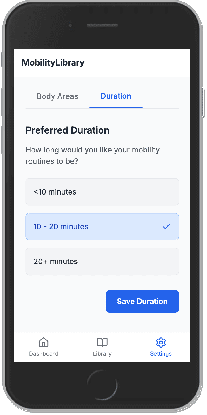 Set your preferences for target body areas & session duration. We'll personalize your experience based on your specific needs.